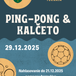 Naša farnosť organizuje pre mladých už 4. ročník vianočného turnaja v ping-pongu a v stolnom futbale v termíne 29.12.2025 v pastoračnom centre. Zahlásiť sa môžete v sakristii kostola, alebo prostredníctvom linku: https://forms.gle/VqSHFo7K7gCFPbau8